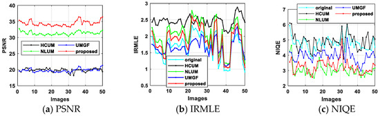 | Method | PSNR | IRMLE | NIQE |