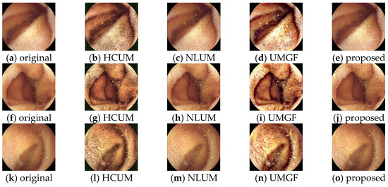 - Long, M.; Xie, X.; Li, G. Wireless capsule endoscopic image enhancement method based on histogram correction and unsharp masking in wavelet domain. In Proceedings of the 2019 17th IEEE International New Circuits and Systems Conference (NEWCAS), Munich, Germany, 23–26 June 2019; pp. 1–4. [Google Scholar]