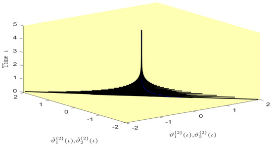 As stated in Definition (5), decays exponentially to zero with a rate of . This implies that , , , and converge globally and exponentially to zero, leading to the conclusion that the master QVNNs in (5) are GES with respect to the slave QVNNs in (7). The proof is complete. □