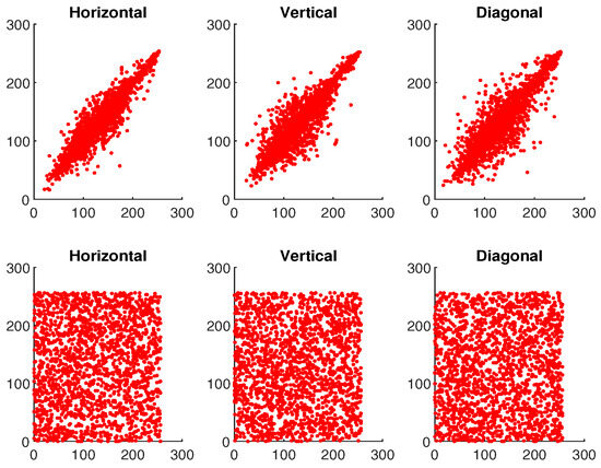 The first and second rows demonstrate the correlation analysis for original and encrypted image of “Mandrill” in red channel.