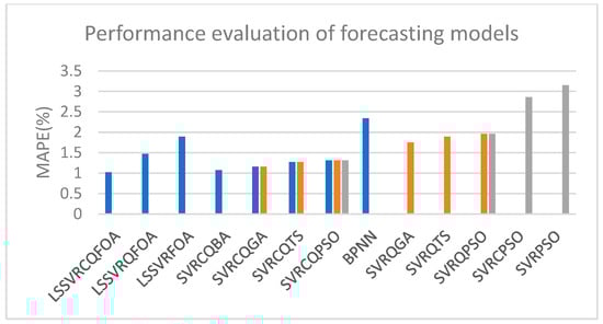 Mean absolute percentage error (MAPE): MAPE is the percentage of the average absolute difference between actual values and estimated values, which is divided by actual value [57,58]. The equation for MAPE is: