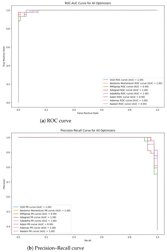 To summarize, the comprehensive analysis of various optimization algorithms within the context of training neural network models reveals critical insights into their performance metrics and effectiveness. Through a meticulous evaluation of accuracy, specificity, sensitivity, F1 score, MCC, and AUC, we established that the NM optimizer not only excelled in these quantitative measures but also demonstrated significant improvements in misclassification metrics, including error rates, log loss, MSE, and MAE. The graphical representations further enriched our understanding of model behavior throughout the training process. The loss and accuracy trends provided a clear depiction of how well each optimizer facilitated learning, highlighting the potential risks of overfitting and underfitting. The scatter plots and error distribution analyses offered nuanced insights into the relationship between predicted probabilities and errors, illuminating the model’s predictive strengths and persistent weaknesses. Additionally, the ROC and precision–recall curves reinforced the importance of selecting the right optimizer based on specific classification tasks. The NM optimizer’s consistent outperformance across various metrics signifies its capability to enhance classification tasks effectively, making it a valuable choice for achieving robust predictive performance. Overall, this analysis underscores the intricate interplay between optimization strategies, evaluation metrics, and model performance, providing a solid foundation for selecting and refining optimizers in future modelling endeavors. By leveraging these insights, practitioners can improve the accuracy and reliability of their models, ultimately leading to more effective outcomes in real-world applications.
