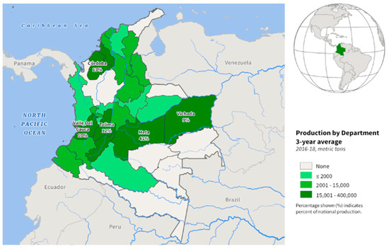 - de Estadística, D.A.N. Sistema de Recolección de Información Agrícola (SIRIA), [Web Application]. 1988. Available online: http://siria.ica.gov.co/ (accessed on 22 June 2024).