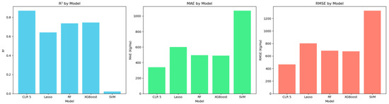 Also, in 2022 [8], the ABSOLUT algorithm was developed using multiple linear regressions for each spatial subunit; this model uses the full spectrum of meteorological averages in different spatial time windows. The algorithm’s results were optimal compared to linear regressors and decision trees, among others. However, the authors conclude that it did not consider other factors affecting yield, such as extreme weather, management practices, and fertilization; therefore, it is not possible to generalize the performance of the model. In 2021 [9], a model called GEM (Genetics, Environment, and Crop Management) was presented, which was used to predict maize yield at each country’s level in the United States. The performance metric used to evaluate the quality of the solution was the RMSE, where good results were achieved compared to other ML algorithms, but it is concluded that the model cannot be generalizable for all counties; in addition, some variables, such as irrigation, fertilization, tillage, and weed control, were not considered.