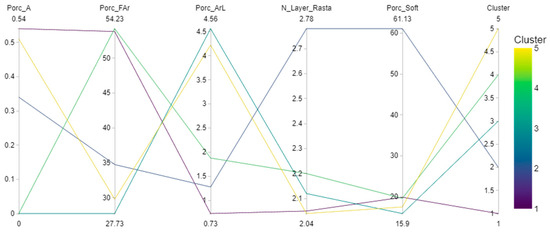 About the definition of the mineable view, it was found that the clusters differed significantly in terms of soil texture and resistance to breakage. However, while dividing the variable containing this information into several columns with percentage values, each layer’s original order of occurrence was not maintained (from the shallowest to the deepest). This is an essential factor for this characteristic because it would indicate which of these characteristics it would have contact with the plant thanks to the depth of its roots, so it is helpful that in future works, a way to preserve the order of these is proposed.