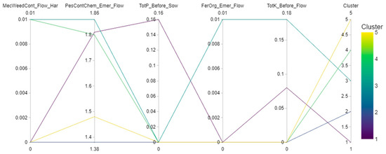 Based on the analysis presented above, it is evident that the variables that influence corn yield prediction differ from one cluster to another; therefore, specific strategies must be defined according to the local conditions of each farm based on the experience of similar farms.