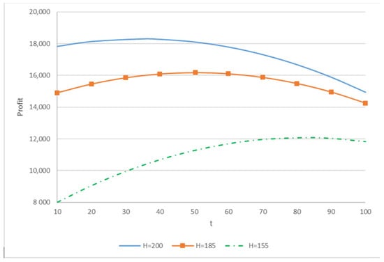 By simulating a variety of market conditions and consumer behaviors, the mathematical model developed in this study aims to optimize both (t) and (D). The model identifies the conditions under which companies can achieve the greatest profit by regulating the transition between high-price and low-price phases. This offers businesses practical insights, particularly in industries where product lifecycles are brief, and pricing strategies must be adaptable and responsive to consumer demands [,].