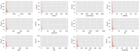 In this section, we demonstrate the application of SA-ZIG using log link on a small dataset. This dataset comprises news articles sourced from the Reuters news archive. Using a Python script to simulate user clicks, we downloaded approximately 2000 articles from the Business category, spanning from 2019 to the summer of 2021. These articles are stored in an SQLite database. From this corpus, we created a small vocabulary consisting of the most frequently used words. We trained a -dimensional dense vector representation for each of the 300 words using the downloaded business news.