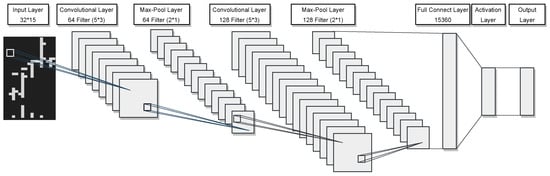 As illustrated in Figure 6, our model is constructed with two CNN modules, with an input size of . The first building block contains 64 filters, and the quantity of filters in each successive convolutional layer adheres to a pattern of doubling.