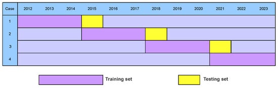 Finally, we conduct tests on four sets of data covering the periods 2012–2014, 2015–2017, 2018–2020, and 2021–2023, respectively. For each period, we randomly designate 70% of the samples as the training set, while the remaining 30% are assigned to the testing set.