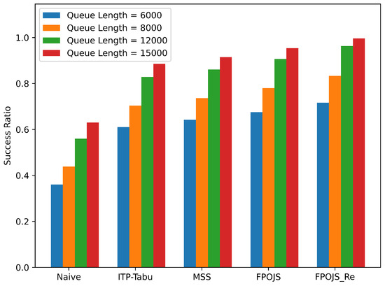 Scheduling success ratios of various algorithms under different queue lengths.