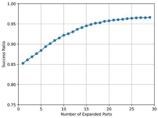 Relationship between the number of expanded ports and the scheduling success ratio.