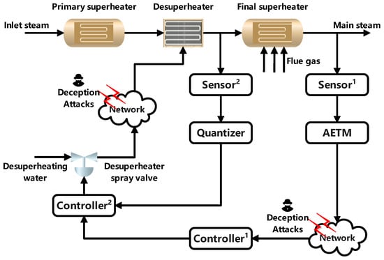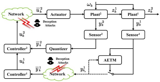Combining the advantages of NCCSs and traditional cascade control systems, the definition of NCCSs is mainly reflected in the sensor–controller, and the data between the controller and actuator are transmitted through the wireless network. Considering the characteristics of the NCCS, a dynamic quantizer is introduced in the secondary loop, and an ADAETM is introduced in the primary loop. At the same time, the risk of deception attacks from primary sensor– to primary controller– and from secondary sensor– to actuator is considered.