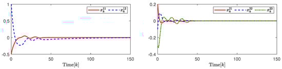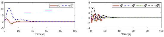 Moreover, the MFs are chosen by , , , and . The initial states of the and are given as and the external disturbance is given as follows: , ; Otherwise, .
