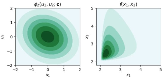 where is a correlation matrix with determinant ; Equation (4) is also referred to as the multivariate normal pdf. Note that is symmetric and positive definite with ones on the diagonal. The model described by Equation (3) is referred to as a translation random vector [16] and Gaussian copula [17].