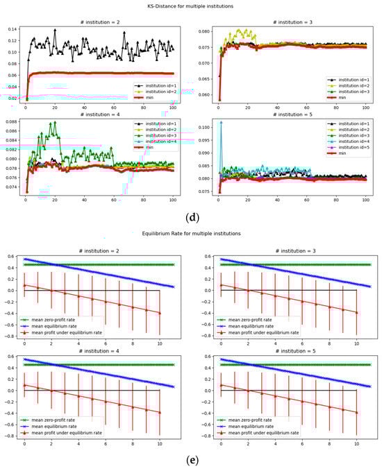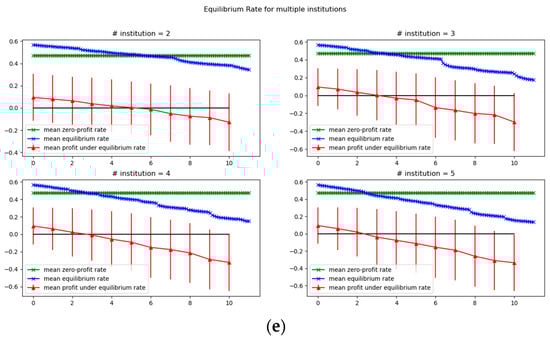 Figure 1e shows that in the multi-institutional situation, the equilibrium market interest rate decreases and eventually falls below zero on average. The intersection of the average equilibrium interest rate trajectory with the average zero-profit interest rate implies an overexpansion of credit and an overaccumulation of risk in a market-wide sense. The peak of
