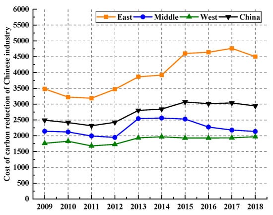 Trends of China’s industrial carbon reduction costs from 2009 to 2018.
