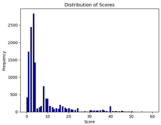 The dataset analysis for essay scoring reveals key metrics reflecting essay features and their correlation with grades. Minimum and maximum scores of 0 and 60 illustrate the score range. Figure 1 displays essay length distribution, showcasing variations in submission lengths. Examining essay lengths, the analysis considers their average, maximum, and minimum lengths.