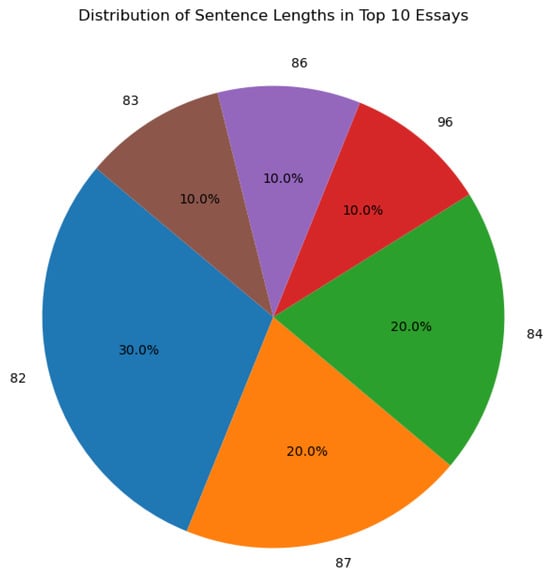 Last but not least, supplementary figures show the distribution of scores in Figure 5 and the distribution of sentence lengths in the top ten essays in Figure 6. These graphic depictions help to clarify the variables affecting essay scores and provide more information about the dataset’s features.