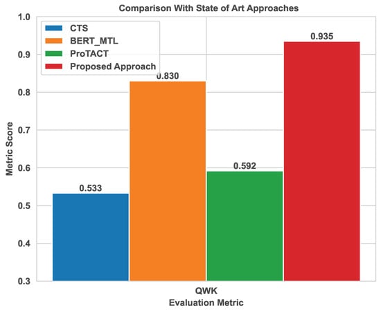 Within the domain of PAES, refs. [,] developed a domain-generalized paradigm based on multi-task learning to create a versatile essay scoring system capable of efficiently handling a variety of prompts. Furthermore, forecasting holistic and trait scores emphasized cross-prompt essay trait scoring. This novel architectural design seamlessly combined prompt-specific and trait-specific encodings, improving the model’s capacity to detect complex essay features across various prompts while keeping prompt-specific properties. Furthermore, refs. [,] addressed other difficulties related to datasets, characteristics, assessment matrices, numerous methodological strategies, and even the trust and motivation of students on these systems in this field of study. Ref. [] proposed models based on Recurrent Neural Networks (RNNs) for predicting essay coherence and argument strength, whereas [] developed a trait scoring model capable of predicting multiple trait scores. Cross-prompt Trait Scorer (CTS) is an innovative approach for simultaneously forecasting holistic and trait scores. Furthermore, refs. [,] proposed using transfer learning and DNN for assessing multidimensional essays, with results demonstrated on the CELA dataset.