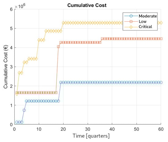Indeed, as the portfolio’s global reliability worsens, i.e., for the low and critical scenarios, the advantages of using the proposed approach are notably increased, as both the costs and the emission values are markedly reduced with respect to the competing approaches. These results evidence how an optimization approach is a valuable resource whenever the average number of interventions to be planned within the time horizon is high.