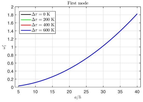 Effect of the temperature change  on the first mode of the frequency ().