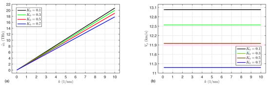 (a) The wave frequency  and (b) phase velocity  versus the wave number k for various values of the porosity factor .