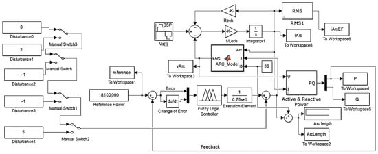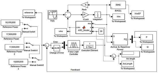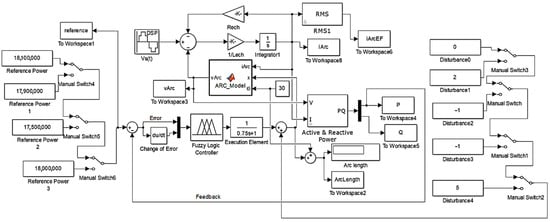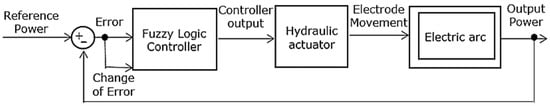 In this paper, we propose an automated control system based on fuzzy logic to control the electric arc power [79,80]. The proposed fuzzy logic controller was compared to a conventional proportional derivative controller by considering the inputs, errors, and derivatives of the errors [81]. The control system was tested in a closed loop.