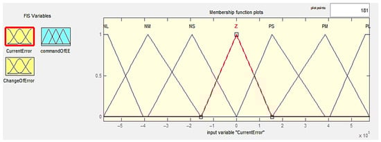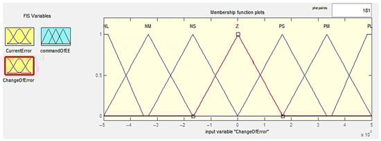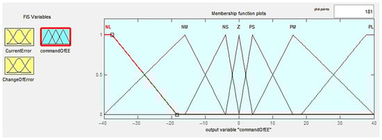 This work proposes a fuzzy control with two inputs and one output, as shown in Figure 5. The inputs include power error and error change. The output value represents the direction and speed with which the electrode is moved. The speed of moving the electrode decreases as the value approaches zero and increases as the value exceeds zero. Also, if the value is negative, the electrode will be moved downward in the vertical axis from its current position, whereas if the value is positive, the electrode will be moved upward in the vertical axis. In this method, the arc length is held at a constant reference value.