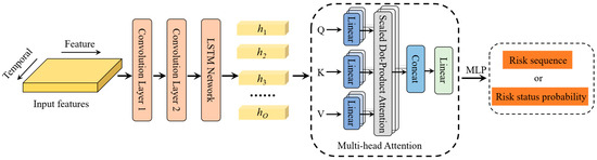 Based on the quantification and classification of driving risks, modeling approaches can be used to predict these risks. The essence of real-time driving risk prediction lies in the analysis and forecasting of time series by constructing a mapping relationship between historical driving feature sequences and future driving risks. There are two main prediction methods in this field: statistical algorithms and data-driven algorithms. Traditional statistical algorithms predict future driving risks by capturing the evolutionary trends of historical driving feature sequences. Although they have a solid theoretical foundation, their application is often limited by assumptions and struggles to capture complex nonlinear dynamic features, resulting in suboptimal prediction performance. With the increase in available data and advancements in computer technology, data-driven algorithms have become the mainstream models in traffic safety analysis. Deep learning is a type of data-driven algorithm characterized by its non-parametric nature, which allows it to effectively capture nonlinear relationships among multidimensional variables. Shangguan et al. conducted a comparative analysis of several data-driven algorithms to evaluate their effectiveness in predicting real-time driving safety statuses [27]. Arvin et al. combined Convolutional Neural Networks (CNN) and Long Short-Term Memory (LSTM) networks to extract driving information from the initial 15 s for predicting crash and near-crash events [28]. Zhang et al. employed several deep learning models to predict the evolution of car-following risks, with results indicating that sequence prediction provides richer safety information compared to status prediction [29].
