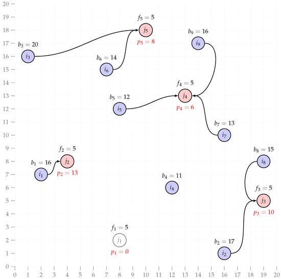 8], the sum of the price of the chosen facility and the travel costs to reach it cannot exceed the customer’s budget. Furthermore, as a rational assumption, we consider that customers are not interested in facilities for which their budget does not even cover the cost of reaching them.