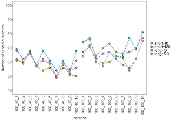 In the computational study, we analyzed the influence of two factors, the length of the customer preference lists and the existence or not of fixed opening costs associated with the facilities. The levels of length are long (meaning that the preference list contains every reachable facility) and short (meaning that the parameter , , is applied). The levels of the fixed costs were set to , (as in the original set of instances), and , . As a result, 80 test instances were solved. Finally, the stopping criterion has been set to a time limit of 3600 s.