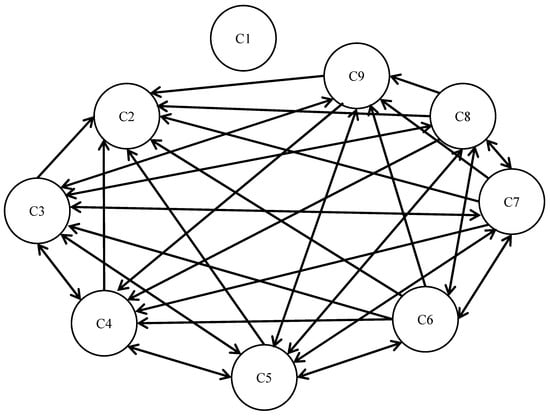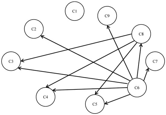 A value of indicates that factor i exerts an influence on factor j. Conversely, a value of signifies that factor i does not exert any influence on factor j. The causal relationship matrix (C) can be employed to construct a causal relationship diagram encompassing all factors.