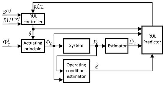 The current value of (the output of the RUL controller) is necessary for the estimation. This is known because is the only tunable parameter which allows the modification of the predicted . It is seen also as a decision-making parameter.