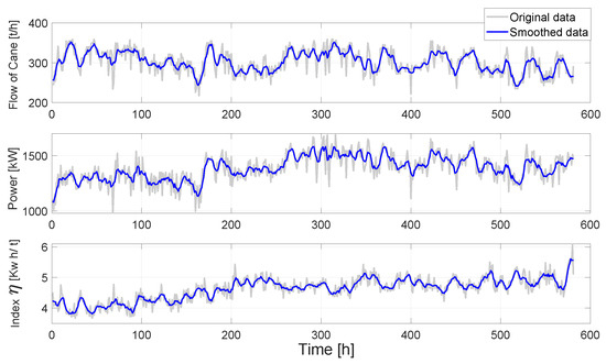 Pre-processed data. Moving average of sugarcane flow, and power of motor is used to model the process.