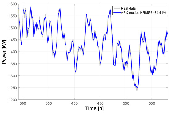 In this section, the parameters of an ARX model, using the relationship expressed by Equation (2), are estimated. The ARX model is performed, tested, and validated from real data.