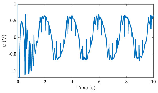 The disturbance estimation and the control action of the proposed control method are provided in Figure 9 and Figure 10, respectively. As shown, the relatively smooth disturbance estimation was generated by using the proposed disturbance observer (38). Hence, continuous control action was achieved by the recommended control algorithm. In addition, owing to the higher accurate disturbance estimation compared to the LDOB and ESO, higher tracking performance was achieved by the proposed controller as a result.