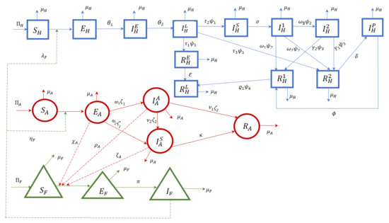 - The capacity of the population of human, animals, and sandflies to fend off infection also plays a role in how smoothly the population moves from one compartment to another.