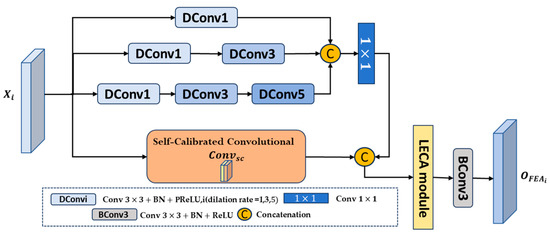 53] to capture richer fine-grained detail features and then concatenates the features extracted by the four branches to help enhance the features. Subsequently, the LECA module [