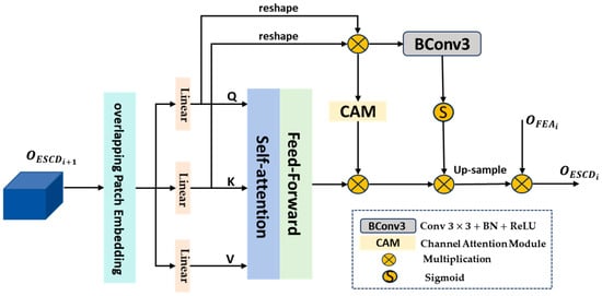 34] is used to filter background noise, purify feature information, and then supplement it with the corresponding high-level features at the decoder end through horizontal connections to bridge semantic gaps. Then, we use one