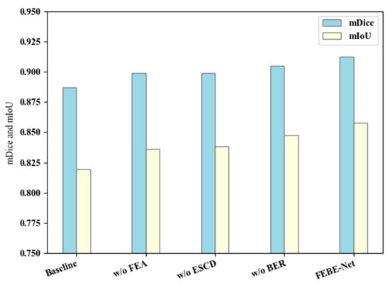 55], the mDice and mIoU indicators of the proposed method reached 0.9126 and 0.8578, respectively, which were 1% and 1.4% higher than that of MSGAT [