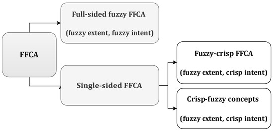 - Crisp-fuzzy FFCA, where each fuzzy concept consists of a crisp extent (a precise set of objects) and a fuzzy intent (a set of attributes with varying degrees of membership) [18].