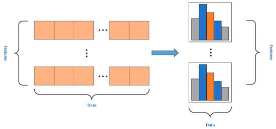 LightGBM is similar to XGBoost in that the negative gradient of the loss function is used as an approximation of the residuals of the current decision tree to fit the new decision tree [25]. At the same time, LightGBM is also optimized on this basis, and the decision tree algorithm of the histogram is selected. The basic idea is to box the eigenvalues, discretize the continuous floating-point eigenvalues into k integers to form a box, and construct a histogram with a width of k. After that, the data are traversed, and the statistics are accumulated in the histogram by the discrete values as the index, and then the optimal segmentation point is found by the discrete values obtained from the histogram shown in Figure 1.