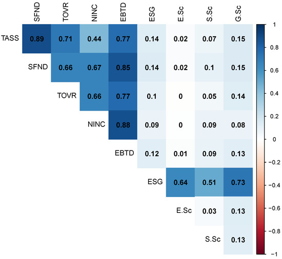 To ensure the quality and reliability of the data, the following exclusion criteria were applied: (1) records with missing financial data, (2) records with missing sector classification, (3) records with missing ESG scores, (4) companies with total assets below 1,000,000 EUR, and (5) companies with turnover below 1,000,000 EUR. After applying these filters, a total of 1062 valid samples were retained for the analysis. Table 1 displays the distribution of SMEs across sectors. Out of a total of 1062 companies, 351 (33.05%) are from the consumer sector, 14 (1.32%) are from the financial sector, 55 (5.18%) are from health and essential utilities, 579 (54.52%) are from manufacturing, and 63 (5.93%) are from the technology and communication industries.