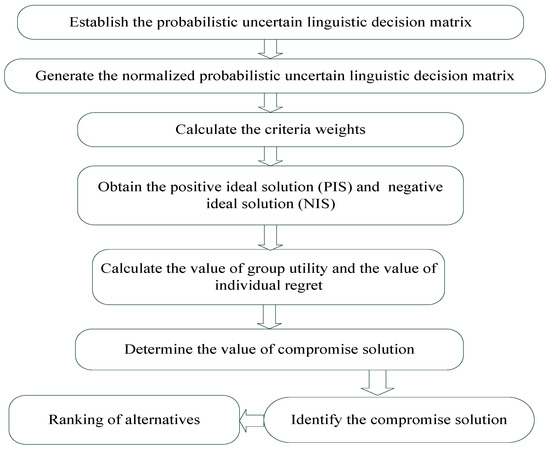 The structure of this work is as follows. Section 2 introduces the related research. Section 3 describes some preliminaries of linguistic term sets (LTSs), PLTS, PULTS, and the VIKOR method. In Section 4, an extended probabilistic uncertain linguistic VIKOR method is proposed; additionally, the detailed calculation process is given. In Section 5, a case study of teaching reform plan evaluation under the background of the construction of new liberal arts is designed to verify the extended method. Finally, Section 6 concludes this study.
