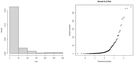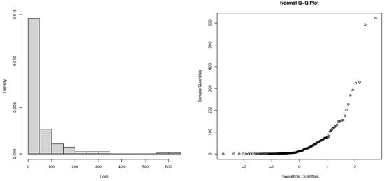 Histogram of Hydro loss dataset and its normal Q-Q plot.