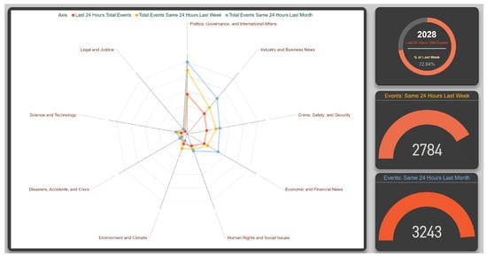 This section presents the results of our experiments covering a period of 405 days, from 25 September 2023 to 4 November 2024. During this time, the system processed 1,033,864 news articles from more than 100 international news portals, including BBC, CNN, Fox News, Sky News, NDTV, The Guardian, Reuters, and others, covering major countries such as the US, UK, Canada, Australia, China, India, and Middle Eastern countries. The news articles were categorized using OpenAI’s GPT-3.5-Turbo API, which classified the articles into 202 subcategories and subsequently mapped them into 11 main categories. The categorization results and system performance metrics are detailed in Table 1, Table 2 and Table 3 and Figure 4, Figure 5, Figure 6 and Figure 7.