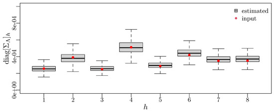 estimated in , is needed to evaluate in the loss distribution at (i.e., onto the long time scale directly). For the sake of convenience, in the following we consider the factor loadings’ matrix without the row of idiosincratic terms (), as it is fully specified by the normalization constraints in Equation (3). In addition, the parameters