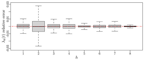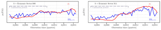 The processes and displayed above are unconditioned, in the sense that they do not take into account the past value of the latent market factors’ array . From an economic perspective, they can be regarded as through-the-cycle distributions of the h-th hazard rate onto the two time scales and , because they are evaluated without considering which phase of the macroeconomic cycle is occurring at t.