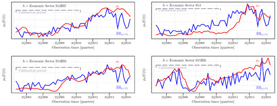Many studies are available concerning the modeling of recessions as a phase of the economic cycle (see, e.g., ref. [26]). In this perspective, the concept of the financial cycle and its relation with the business cycle has also been deeply investigated [27,28]. According to this macro-economic approach, the possible occurrence of a recession is seen as a phase of the interrelated dynamics of financial markets and the real economy. However, in this framework, default probabilities are not explanatory variables and recessions are mainly measured and modeled by considering GDP level, employment rate, interest rates, and other macroeconomic and financial variables as risk drivers (see, e.g., refs. [29,30]). One of the first models of this type is the “classic” CreditPortfolioView [31,32], where the probabilities of default are assumed to be a function of macro-economic variables, represented through autoregressive processes. Although not explicitly focused on recessions, these models allow to map the business cycle dynamics investigated in the aforementioned macro-economic literature to the default probabilities, thus being able to project an increasing number of default events in the presence of adverse macro-economic scenarios. The drawback of such a composite approach to managing Recession Risk is the vast data requirements to calibrate and validate the models, whose assumptions could need a high level of maintenance depending on the context. Furthermore, contagion models (see, e.g., ref. [33]) improve the macro-economic-inspired models by adding a further layer of complexity, based on the micro-economic description of direct connections between firms.